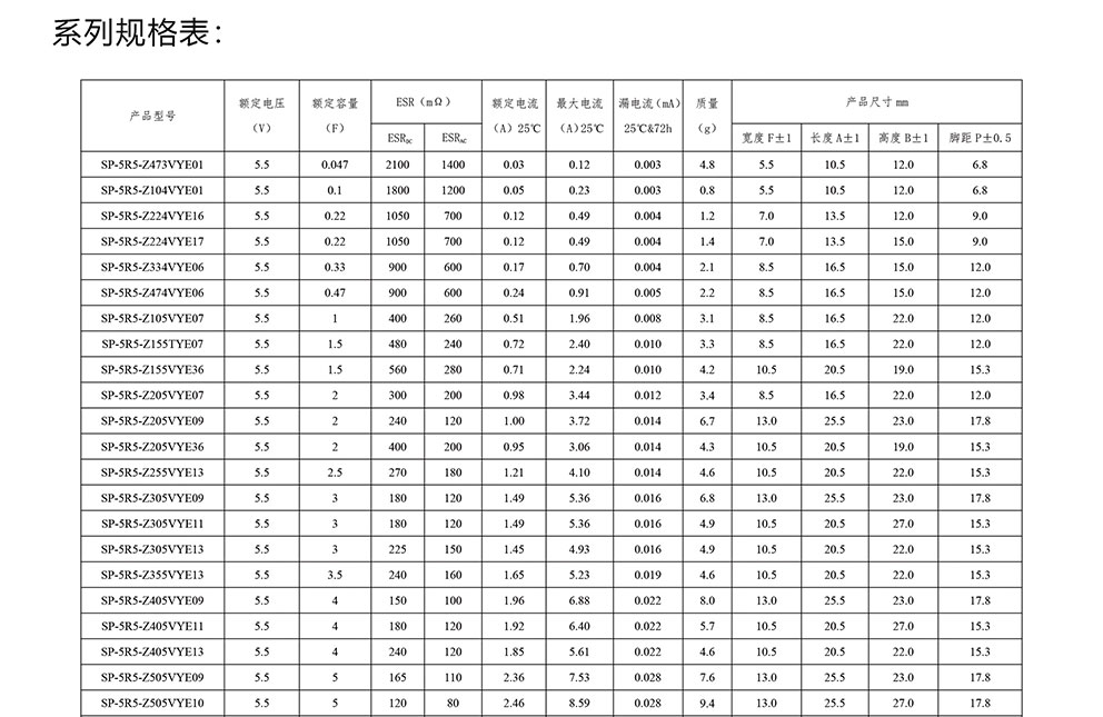 超級電容器 SP系列